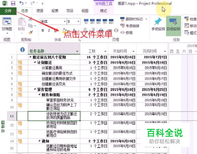 首先我们打开Project 2013软件,准备一个项目计划列表,如下图所示,接下来就会把这些内容导出到Excel中