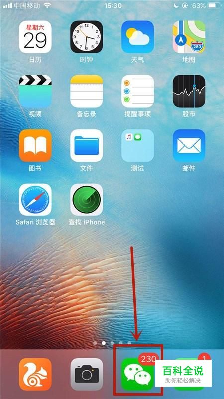 首先在我们的手机桌面上找到微信并点击它,如下图所示。