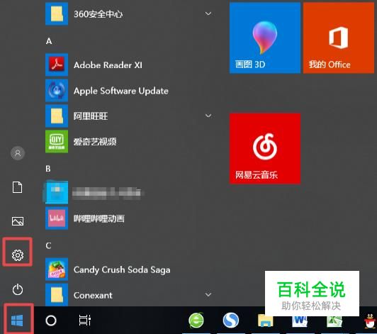 首先,我们点击左下角的微软按钮,弹出的界面,我们点击设置;