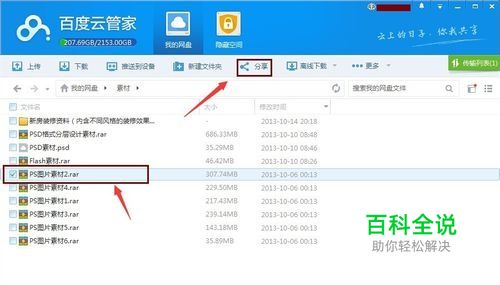 上传自己需要分享的资料,直接拖动文件到百度云管家即可,上传完成后,选中要分享的文件。