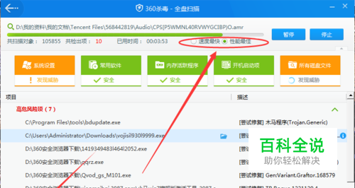 注意左下角的“扫描完成后自动处理并关机”和右上角的“速度最快””性能最佳“本人建议选择性能最佳。点击立即处理。