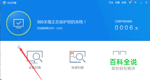 首先。打开360杀毒软件,点击左上角的一个小圆圈进入新的界面,来完成我们360的多重防御系统的改变。