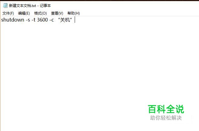 接下来在文本文档中输入如下图所示的shutdown命令