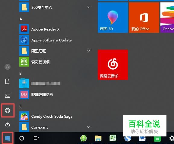 首先,我们点击开始按钮,弹出的界面,我们点击设置,如图所示;