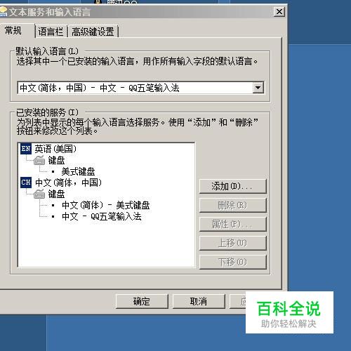 即时弹出了文本服务和输入语言的面板。如图所示,在需要删除的输入法名称这里点击一下,选中此输入法。