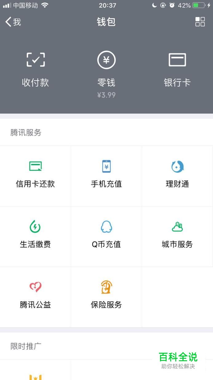 首先点击微信钱包右上角的图标,如下图所示。