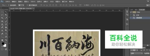 首先,我们打开PS,导入想要处理的照片,并复制一层备用。如下图,这幅书法上有一些皱褶,我们的目的就是去掉它们。