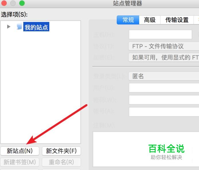 在打开的窗口上,点击‘新站点’。