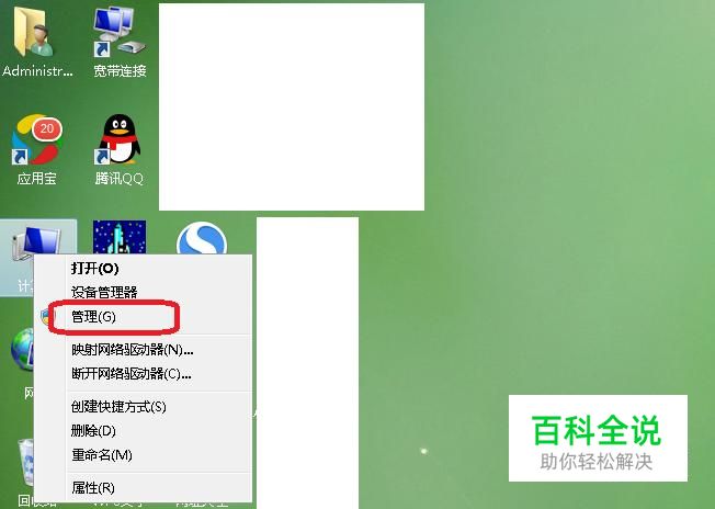 首先,我们打开电脑,在桌面上右键单击“计算机”图标,选择“管理”。