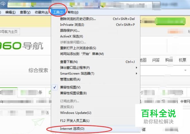 Internet选项 打开IE浏览器,然后点击【工具】----【Internet选项】,如下图所示: