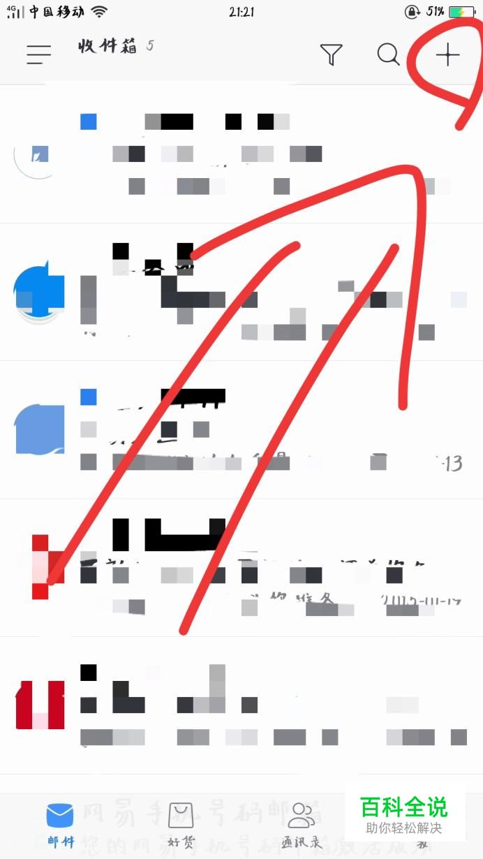 进入网易邮箱大师软件首页界面,点击右上角“+”,可快速添加邮箱。