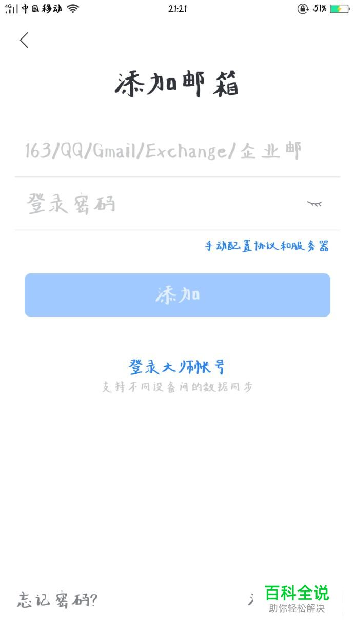 输入邮箱账号与密码即可成功登录,添加邮箱。