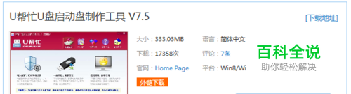 U帮忙U盘启动盘制作工具 1.多台电脑装机测试发现兼容性很好! 2.安全证好(用多种杀毒软件查杀) 3.不锁主页(也不需要取消赞助商主页) 4.软件大小(333MB)