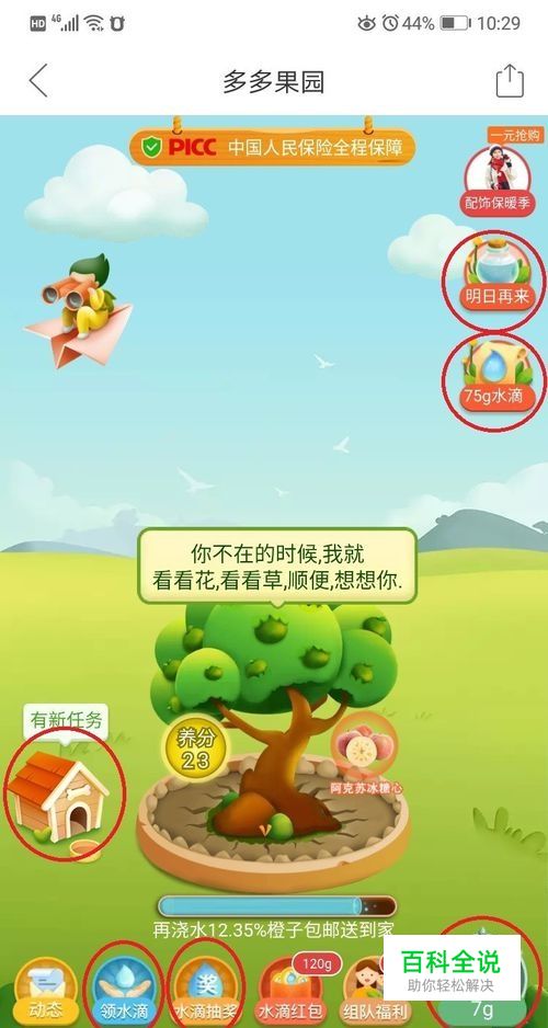 多多果园,只要不断的给树浇水和施肥等到果子成熟就给邮递真正的水果了。重点是浇水。。。浇水。。。