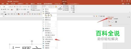 右键单击文本,选择“设置形状格式”,右侧将打开格式设置窗口。