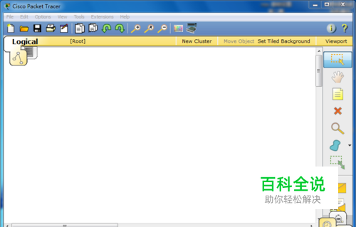 一、安装Cisco Packet Tracer 6.0软件,打开后进入软件界面如图,右侧是一些工具栏,左下栏为模拟的设备栏。平时使用是直接用鼠标拖进工作区就可以。