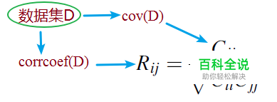 于是,已知数据集D,可以通过以下MATLAB命令获得其协方差矩阵C和相关系数矩阵R: C=cov(D); % covariance R=corrcoef(D); % correlation coefficient