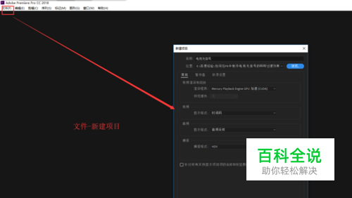 打开Premiere这个视频后期剪辑软件,执行文件菜单,在文件菜单中找到新建命令,新建一个PR项目。