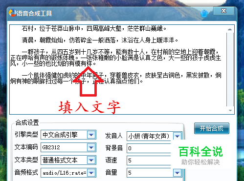 点击软件“开始合成”按钮进行语音合成,合成后语音保存在软件的安装目录中,文件名为“合成语音”