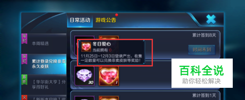 在活动期间,玩家每天登录王者荣耀游戏后签到就能获得一个冬日爱心,只要在11月25日至12月3日期间获得7个冬日爱心,就可以兑换刘备黑帮教父皮肤了。
