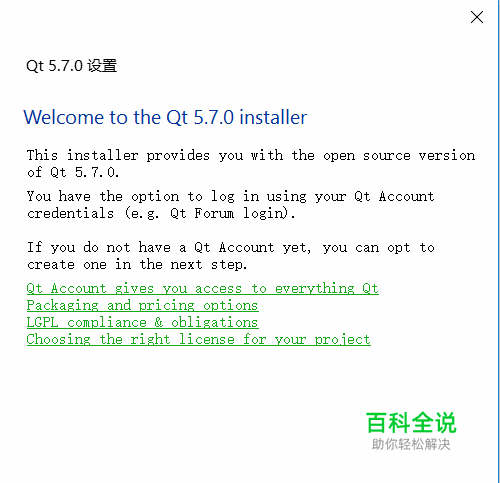 安装Qt 5.7 for Windows。 在如下地址:http://download.qt.io/official_releases/qt/5.7/5.7.0/中下载安装【qt-opensource-windows-x86-msvc2015_64-5.7.0.exe】这个版本的Qt。