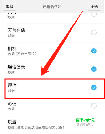 这时候我们就可以根据列表选项,找到自己想要恢复的“短信数据”文件勾选,然后点击“确定”按钮,手机就开始进行短信数据恢复操作。