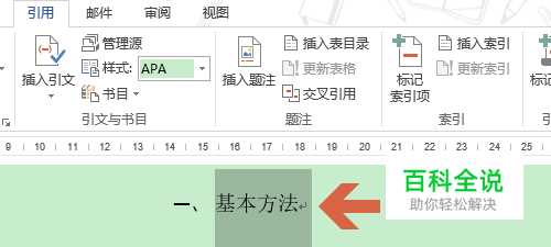小编以自己在用的word 2013为例给大家做演示,如下图中的“基本方法”这一段落,如果属于1级目录,那么首先选中它;