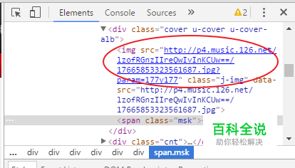 我们定位到的位置上方有一个带参数的图片地址,它就是我们需要获得的专辑图片的地址了。