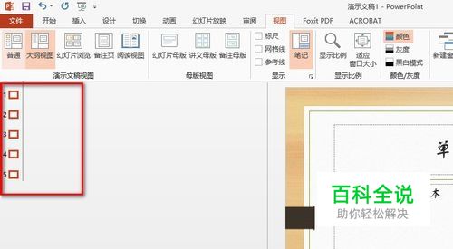 将繁体ppt文件打开,切换到大纲视图,具体方法为点击菜单栏中的视图,点击视图下的大纲视图