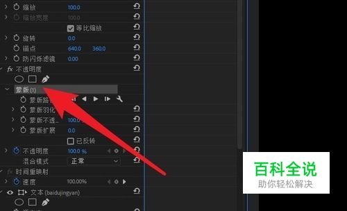 然后选中字幕素材,点击不透明度创建一个矩形蒙版。