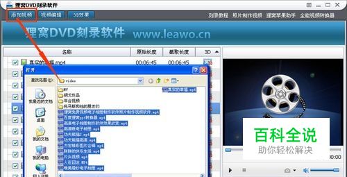 打开软件,将数个mp4格式视频添加到软件上,只要你的光盘空间够大,添加文件数目不限,当然格式也不限的!如图所示!
