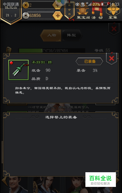 一个小时以后就可以拿到A级的不归剑了,可以看下属性。