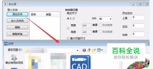 左侧点击【文件】-【批处理】,打开批处理对话框。点击【添加文件】,添加需要输出为PDF格式的CAD图纸。