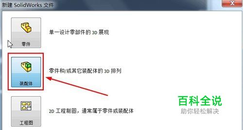 按住Ctrl和n键,打开新建对话框,新建装配体,确定,如图所示
