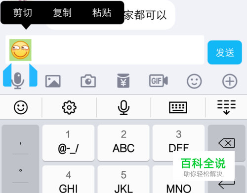 1.在手机上添加名字表情,进入QQ聊天界面选择一个表情,不要发送出去,对表情进行长按对表情选择剪切。