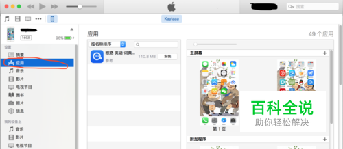 将你的iphone和装有itunes的电脑连接,正常连接后应该有如下页面,点击应用。