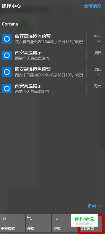 打开win10账户设置。(在控制面板中进入,或者在桌面右下角的消息中心中的设置中也可以。)