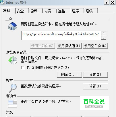 单击IE的“工具”菜单→“Internet选项”→“常规”选项卡;