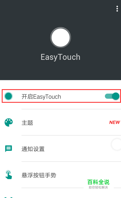 点击进入此应用,将开启EasyTouch的开关打开,就会出现桌面小圆点。