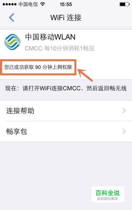 认证成功,成功接入CMCC,畅无线开始计时,这时候就可以享受畅通免费的网络啦!