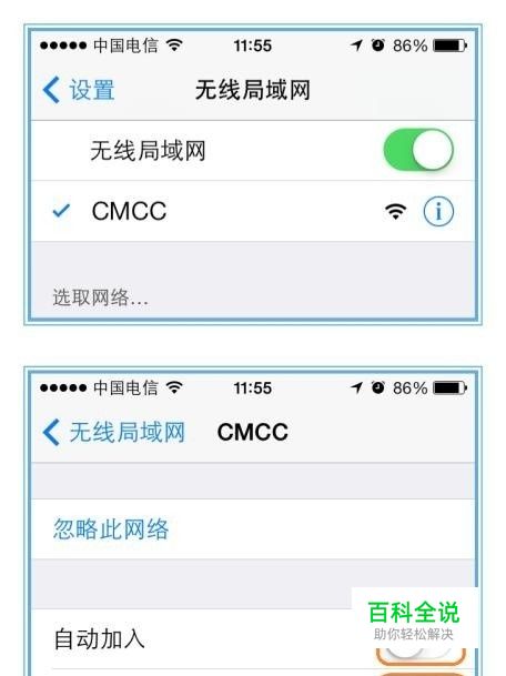 回到手机的wlan设置页面,在无线局域网设置中手动连接CMCC,且关闭“自动加入”以及“自动登录”。