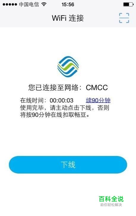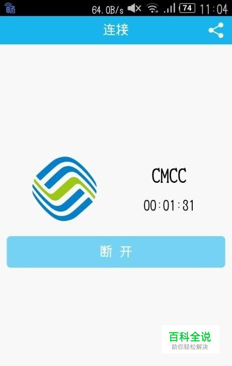 在数据流量开启的状态下,点击“连接”页面的的CMCC信号,成功获取90分钟的连接权限。