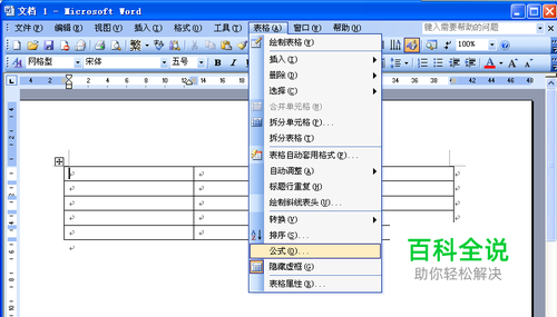 把光标放到需要计算的单元格内,在Word窗口菜单栏依次单击“表格”→“公式”菜单命令。