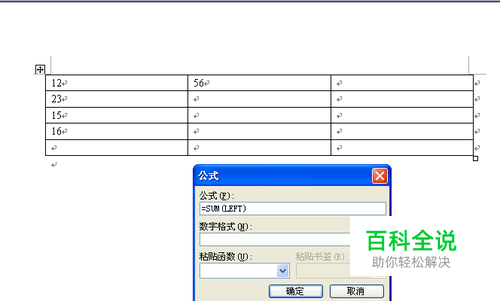 打开“公式”对话框。此时系统根据当前光标所在位置及周围单元格的数据内容,自动在“公式”编辑框中添加了公式“=SUM(LEFT)”。