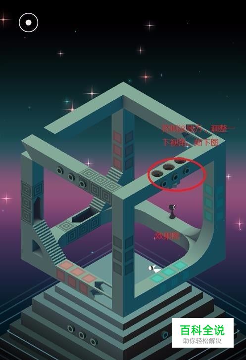 滑动图片中四个小圆圈的方位,你会发现场景的布局会跟着有所改变,让主角来到第一阶,然后在滑动圆圈按钮,玩家就会看到一篇坦途,就这样我们顺利的来到了顶层,随着空间图形的巧妙变换我们来到了如下图的场景,这个场景你会看到许多放在地上的小方块,踩上它你就会发现许多神奇的的空间变化,先让艾达来到图腾柱子上,然后将柱子移动到如图前方打箭头的方块上,会变换到如下右图的造型,然后将图腾柱子移动到最右端,踩上方块,然后将图腾柱子移动到如下左图的位置,然后再将图腾柱子移动到如下右图,然后控制主角再次踩上左图中的方块,