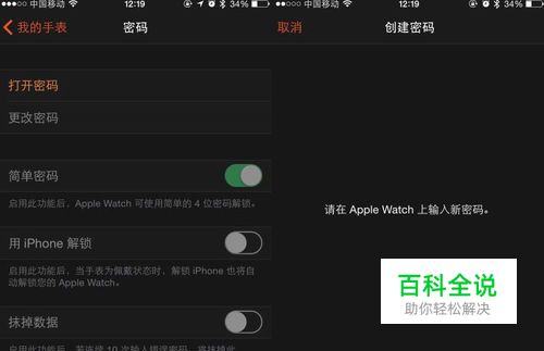 在 iPhone 上创建密码: 打开 Apple Watch 应用程序。 前往我的手表-密码-打开密码部分。 转回 Apple Watch 按照系统提示操作输入即可