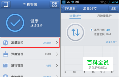 进入腾讯手机管家健康优化页面的【流量监控】