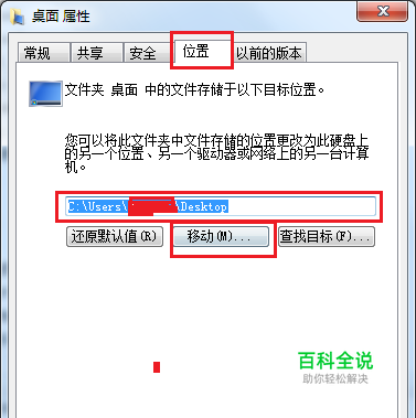 这时如果想要更改桌面路径,找到此磁盘,右键 -> 属性,就会发现在此对话框中会自动多一个 【位置】选项卡,打开此选项卡,然后可以根据需要更改桌面路径,就可以了。