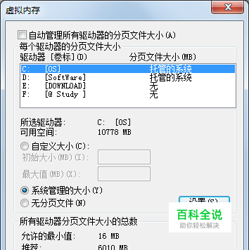 将每个盘的 分页文件大小(MB)选为 无分页文件, 别忘了点设置呦,如下图