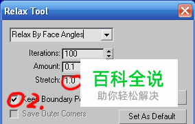 确保1、2位置如图设置:开始选Relax By Centers 然后 Apply 几下,后面选Relax By Face Angles继续Apply。如果有地方的点实在不听话还可以穿插着用前面提过的小技巧。直到满意为止